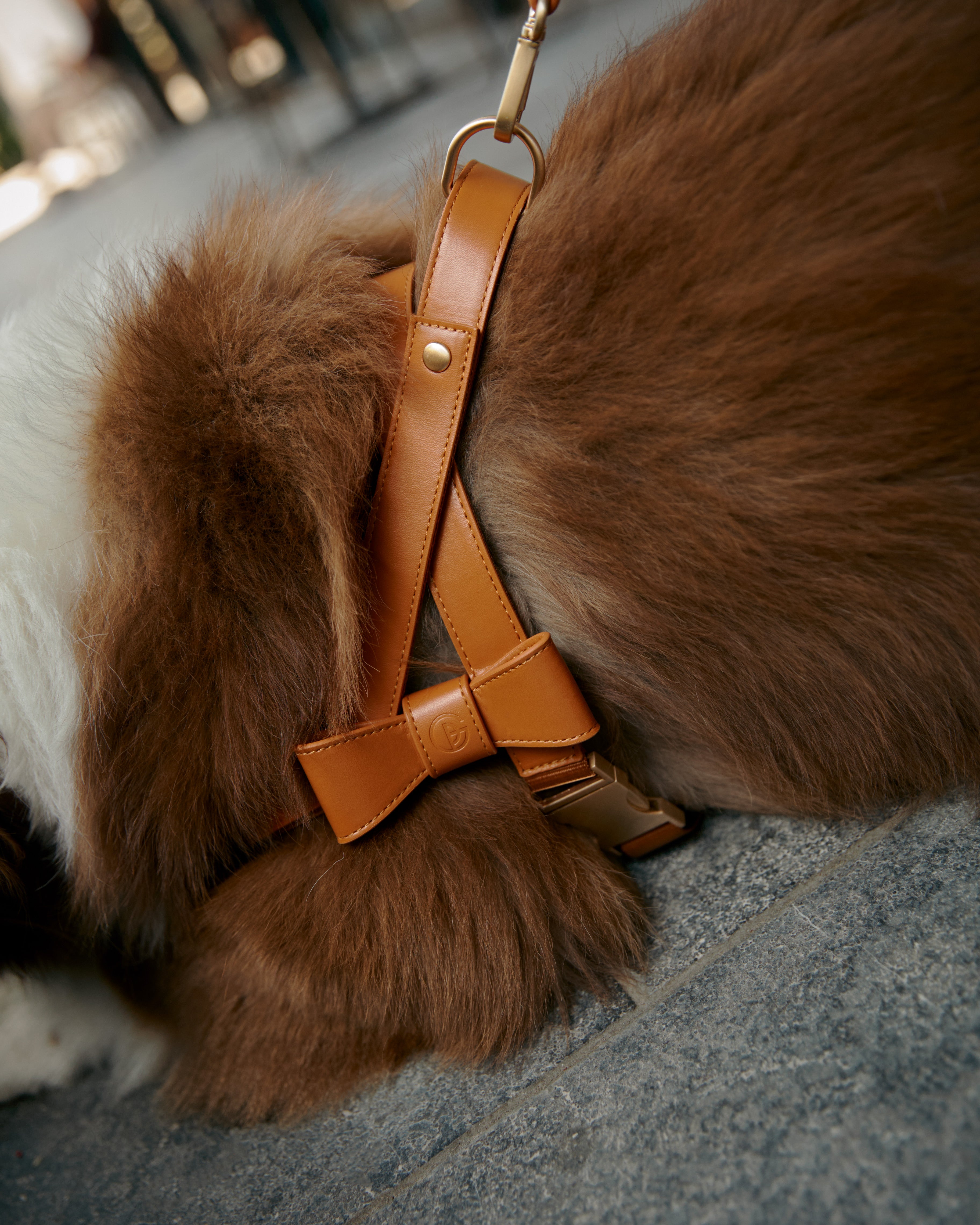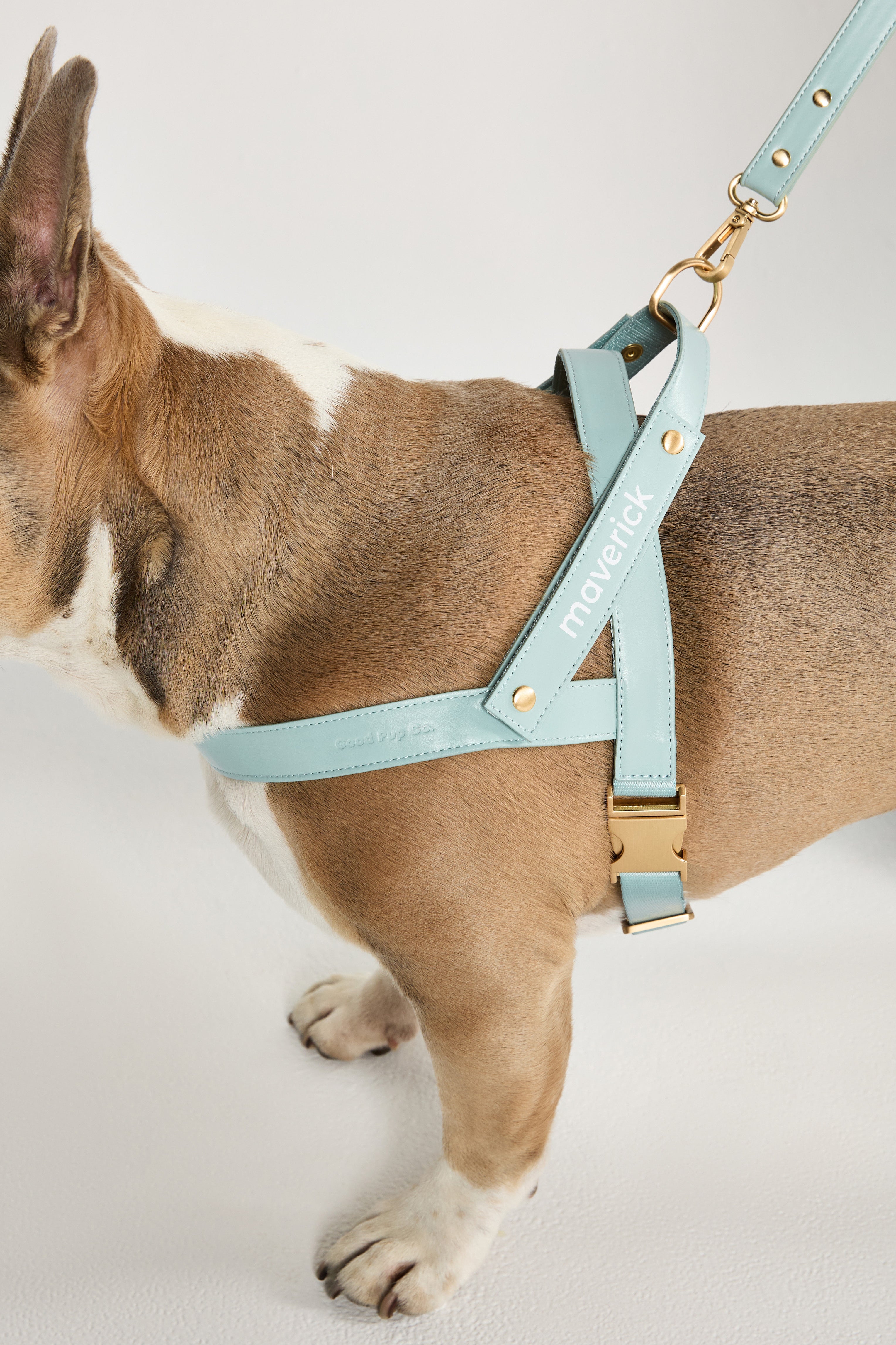 Crafted from soft, durable vegan leather and a breathable mesh lining, each harness is thoughtfully finished with beautiful, brushed gold hardware. Every element has been intentionally designed to ensure your pup’s comfort and to make your everyday routine feel effortless.