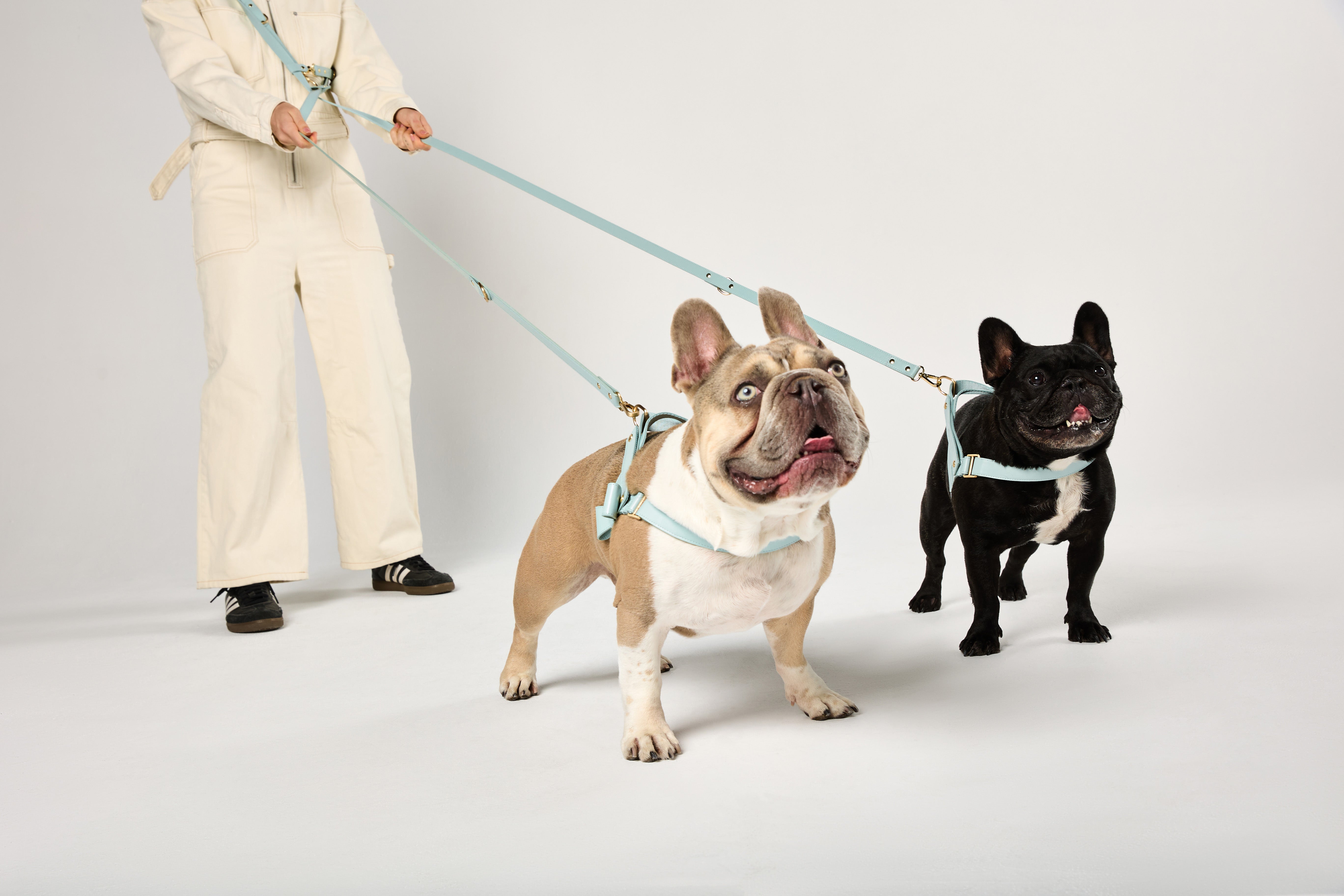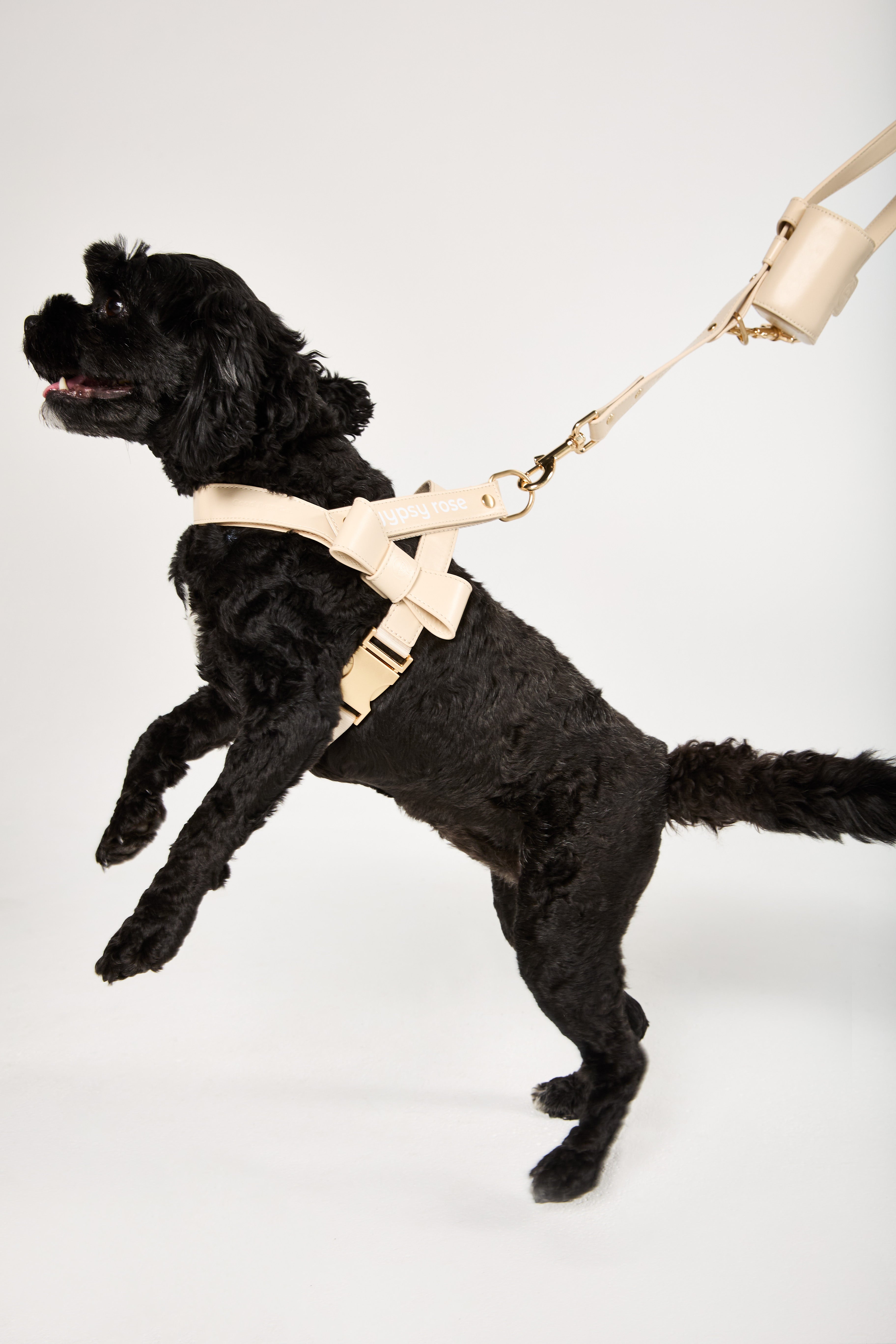 Crafted from soft, durable vegan leather and a breathable mesh lining, each harness is thoughtfully finished with beautiful, brushed gold hardware. Every element has been intentionally designed to ensure your pup’s comfort and to make your everyday routine feel effortless.
